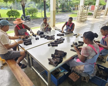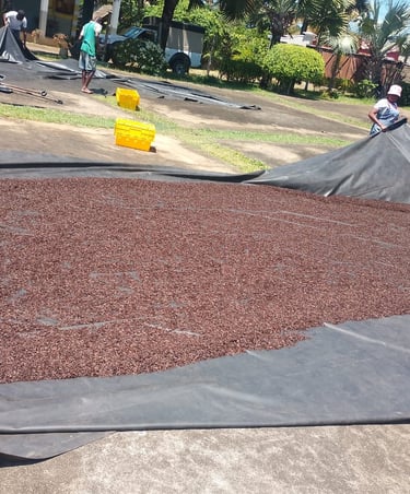 Ensuite vient l'étape de l'étuvage, où les gousses, enveloppées dans des couvertures ou des toiles, sont laissées à transpirer pendant 48 heures. Durant cette période, les gousses dégagent leurs premières senteurs et commencent à perdre de l'humidité. Ce processus, parfois répété plusieurs fois selon le niveau de maturation souhaité, est déterminant pour l’intensité aromatique future de la vanille. Chaque étape est suivie avec précision pour garantir une vanille riche, souple et pleine d’arômes.