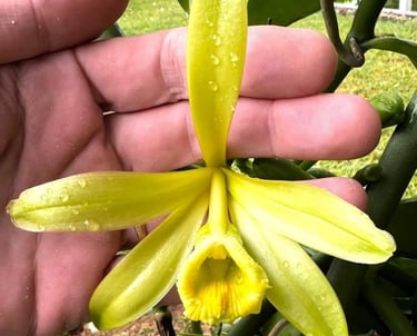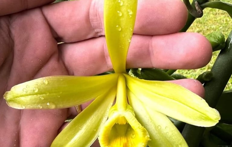 La production de vanille est un processus long et méticuleux, qui commence avec la pollinisation manuelle. Chaque fleur de vanille, ouverte seulement une journée, est délicatement fécondée à la main pour permettre la formation des gousses. Après plusieurs mois de maturation, vient la récolte, où les gousses encore vertes sont soigneusement cueillies à la main. S'ensuit l'étape de l'échaudage, qui consiste à plonger les gousses dans de l’eau chaude pour stopper leur maturation, avant de passer à l'étuvage, où elles sont enveloppées et laissées à transpirer pendant 48 heures pour libérer leurs premières senteurs. Les gousses sont ensuite exposées au séchage à l'ombre, où elles reposent pendant plusieurs semaines, développant lentement leur texture souple et leurs arômes riches. Le triage suit, une étape où chaque gousse est inspectée et classée selon sa qualité. Enfin, les gousses sont placées en mise en boîte pour leur affinement final, puis subissent une vérification rigoureuse avant d’être prêtes à être commercialisées. Ce processus, mêlant savoir-faire artisanal et soin méticuleux, garantit une vanille d'exception, prête à être dégustée.