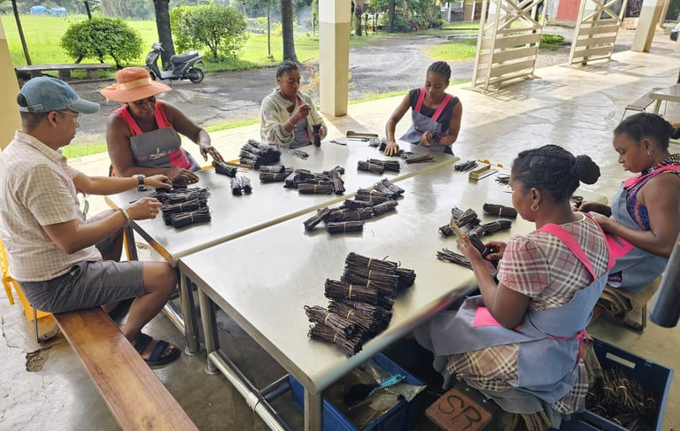 Une fois les gousses de vanille passées par les étapes de séchage, vient l'étape du triage, un processus délicat qui exige une attention minutieuse. Chaque gousse est soigneusement inspectée à la main, évaluée pour sa taille, sa texture, son apparence et son parfum. Les gousses sont ensuite classées selon leur qualité, leur souplesse, et leur richesse aromatique. Ce triage méticuleux permet de distinguer les gousses de qualité supérieure, destinées aux produits haut de gamme, des autres catégories. Cette sélection garantit que seules les meilleures gousses de vanille arrivent dans vos créations, assurant une expérience gustative incomparable.